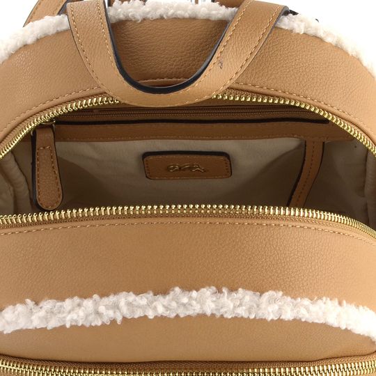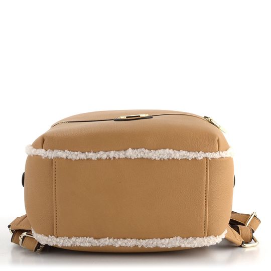 Dámský městský batůžek v karamelovém odstínu s módní kožešinkou podél švů.