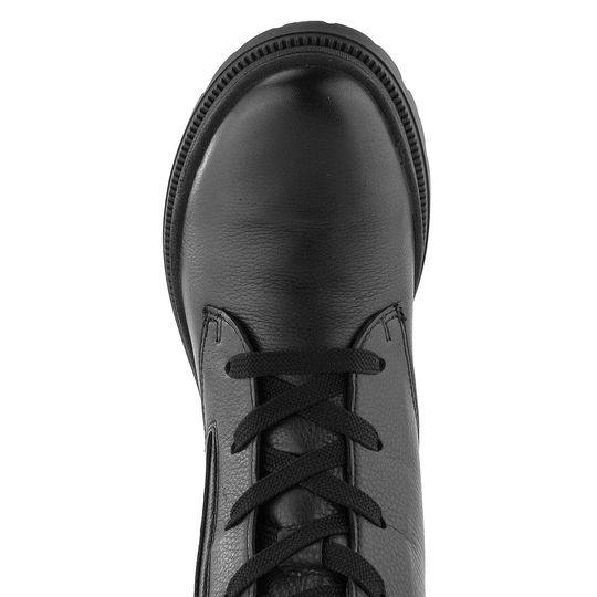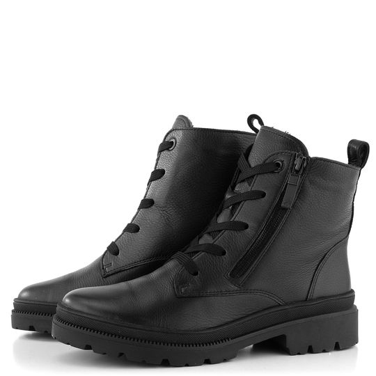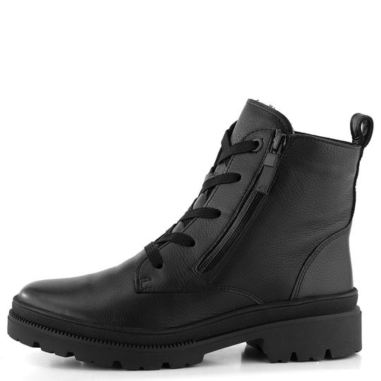 Komfortní dámský kožený kotník v černé barvě, s postranním zipem pro snadné obutí.
