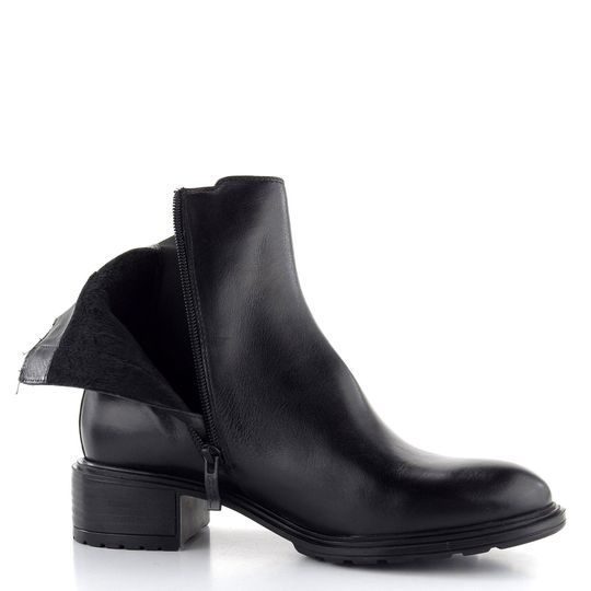 Dámský, lehce vyteplený kotník v elegantním provedení se širokou pružinou, postranním zipem a módní sponkou.
