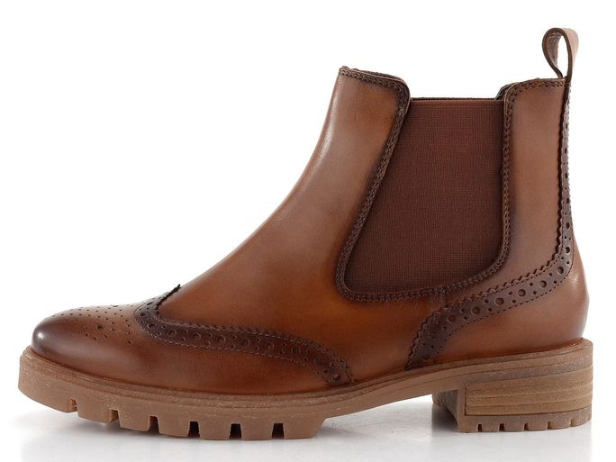 Dámské chelsea boty od značky Ara z kolekce podzim/zima 2024/25 představují ideální volbu pro ty, kteří hledají kombinaci komfortu a stylu. Tento model v koňakově hnědé barvě je vyroben z kvalitní hladké kůže s brogue zdobením. Pohodlný kotníkový střih s kulatou špicí je ideální pro standardní typ chodidla, přičemž obuv snadno nazujete díky širokým pruženkám na bocích.