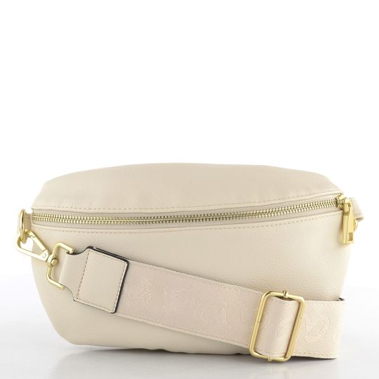 Dámská crossbody kabelka ve tvaru ledvinky s odepínatelným popruhem.