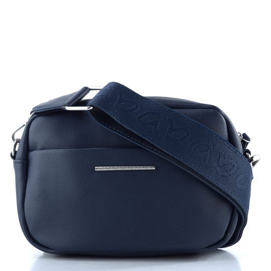 Malá dámská kabelka v tmavě modrém proedení provedení s vytkávaným crossbody popruhem.