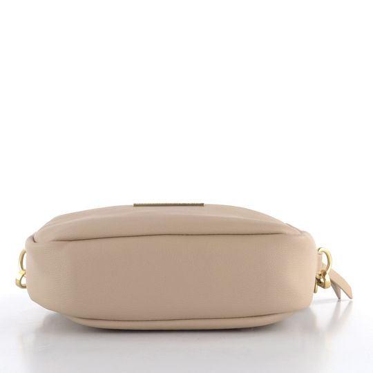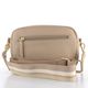 Malá dámská kabelka v příjemném béžovém provedení s pruhovaným crossbody popruhem.