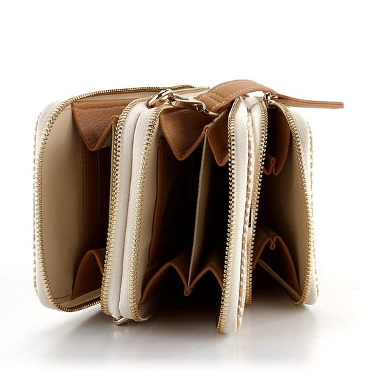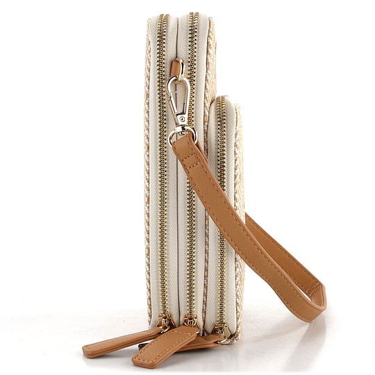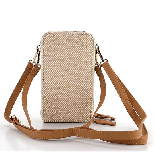 Stylová dámská crossbody kabelka od značky Ara je ideální volbou pro moderní ženu, která hledá praktický a elegantní doplněk. Tento malý střih je perfektní na nezbytnosti a lze jej využít i jako peněženku. Kabelka se pyšní svrškem ze syntetiky tkaným do vzoru, který kombinuje béžovou a smetanovou barvu. Zlaté kování dodává kabelce luxusní vzhled.