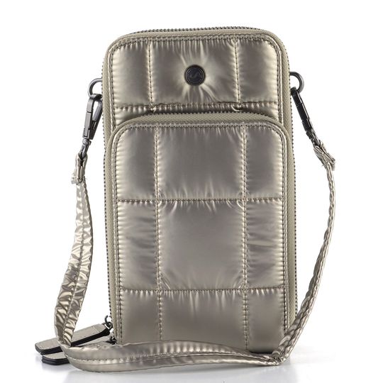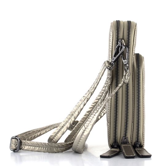 Stylová dámská crossbody kabelka od značky Ara je ideální volbou pro podzimní a zimní sezónu. Tento model zaujme svým metalickým leskem a prošívaným čtvercovým vzorem, který dodává kabelce moderní vzhled. Kabelka je vyrobena z kvalitní textilie v odstínu béžovostříbrné barvy a doplněna kováním a zipy v tmavě ocelové barvě (hematit).