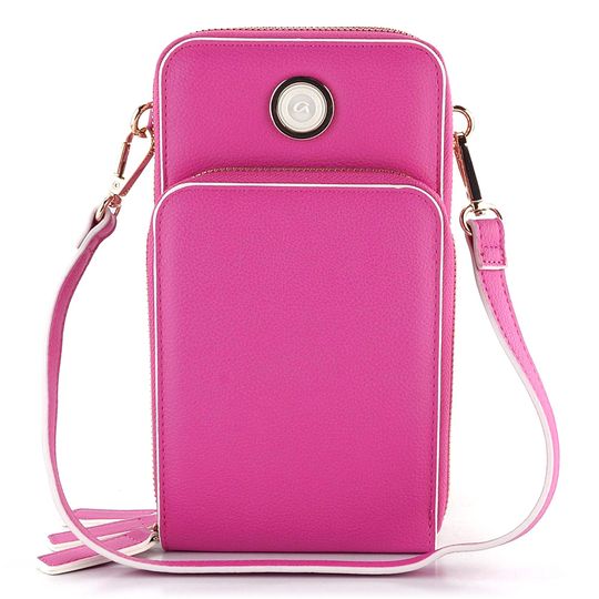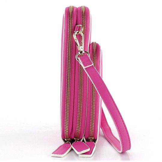 Stylová dámská crossbody kabelka od značky Ara je ideální volbou pro ženy, které hledají eleganci a praktičnost v jednom. Tento kousek vyniká svým malým střihem, který je perfektní na nezbytnosti, a lze jej využít i jako peněženku. Kabelka je vyrobena z jemně strukturované syntetiky v syté růžové barvě s bílými konturami, doplněná kováním ve zlatém odstínu.