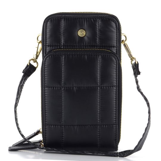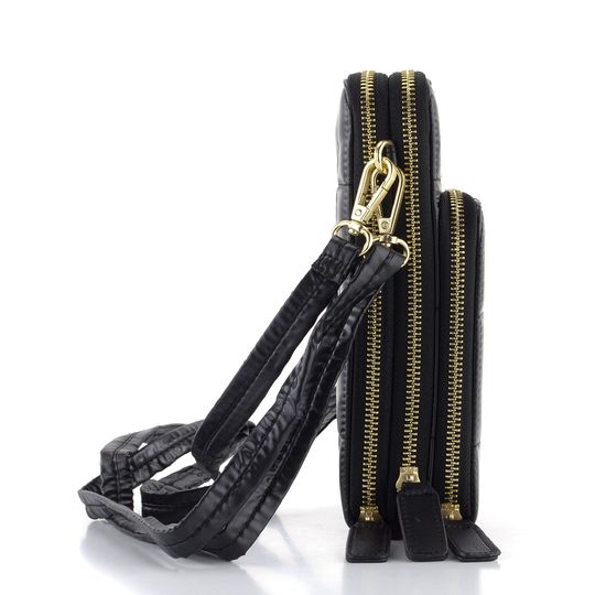 Stylová dámská crossbody kabelka od značky Ara je ideální volbou pro ty, kdo hledají praktický a elegantní doplněk. Díky svému malému střihu je perfektní na nezbytnosti a lze ji využít i jako peněženku. Kabelka je vyrobena z hedvábně lesklé textilie prošívané do čtvercového vzoru, což jí dodává luxusní vzhled. Černá barva v kombinaci s kováním a zipy ve světle zlaté barvě vytváří sofistikovaný kontrast.