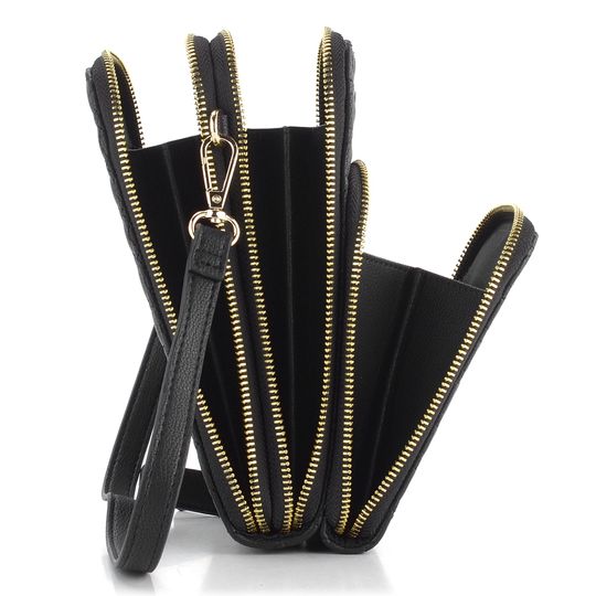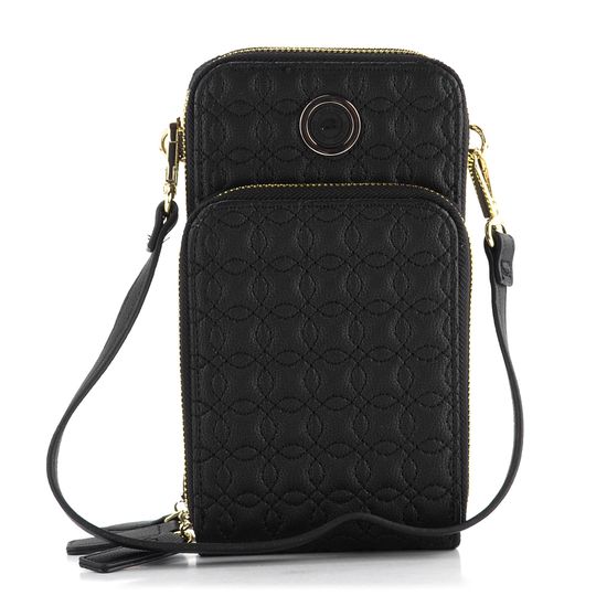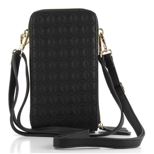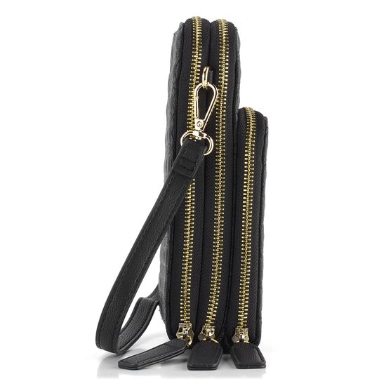 Malá dámská crossbody kabelka v černé barvě s prošívaným vzorem a s variabilními popruhy.