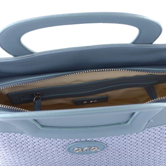 Dámská kabelka značky Ara je ideálním doplňkem pro každou příležitost. S jemně strukturovanou syntetikou a splétaným umělým lýkem v světlé šedomodré barvě s fialovým nádechem, tato kabelka přináší kombinaci elegance a praktičnosti. Její menší velikost je perfektní pro každodenní nošení, a díky odepínatelnému crossbody popruhu s nastavitelnou délkou ji můžete nosit podle svých potřeb.