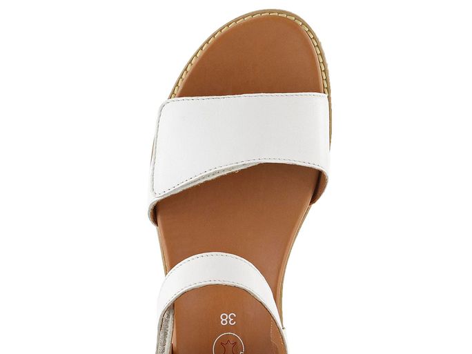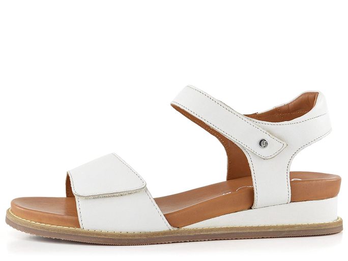 Kožené dámské sandály na mírném klínku s upínacími pásky na suchý zip a s komfortní nášlapnou stélkou.
