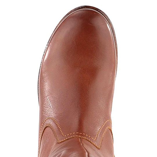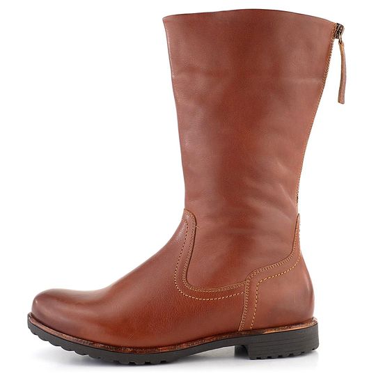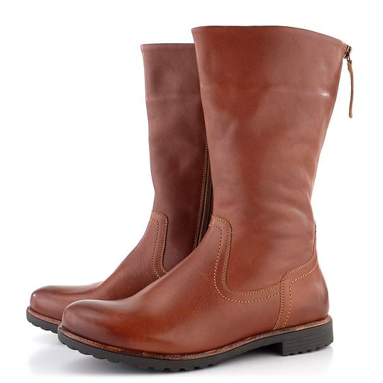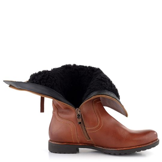 Dámské kožené polokozačky v přírodním hnědém odstínu, s teplou beránkovou podšívkou.