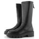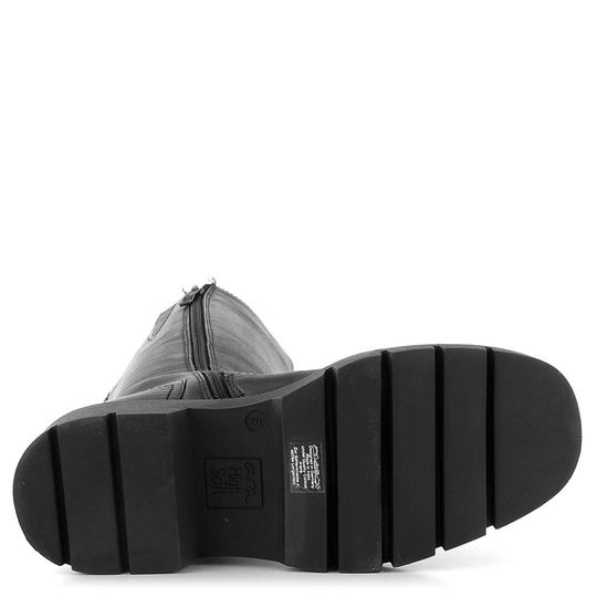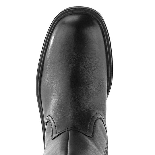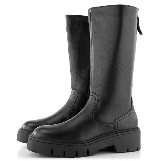 Dámské kožené polokozačky v černé barvě, s mírně teplou podšívkou a vyšší hrubou platformou.