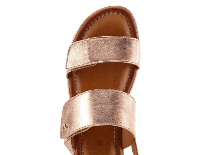 Kožené dámské sandály na mírném klínku s upínacími pásky na suchý zip a s komfortní vyměkčenou nášlapnou stélkou.