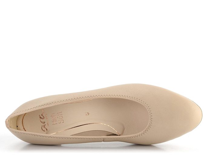 Dámské elegantní lodičky v jednoduchém střihu, vyrobené z kvalitní hladké kůže v béžové barvě.