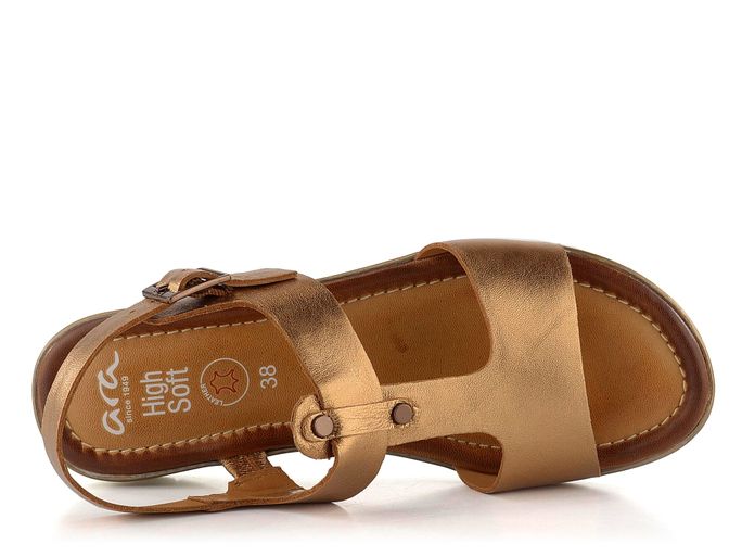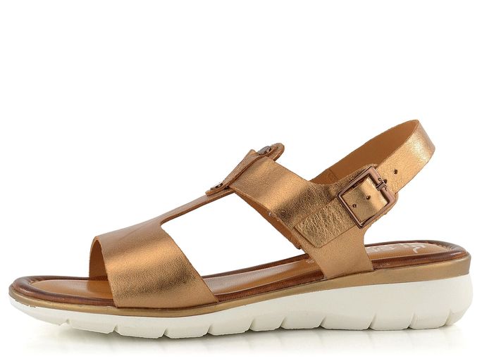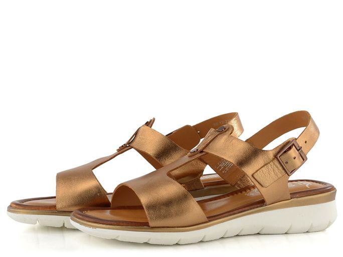 Kožené dámské metalické sandály na mírném klínku s komfortní nášlapnou stélkou.