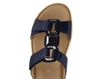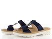Dámské kožené pantofle v modré barvě s upínacími pásky na suchý zip a robustní podešví.