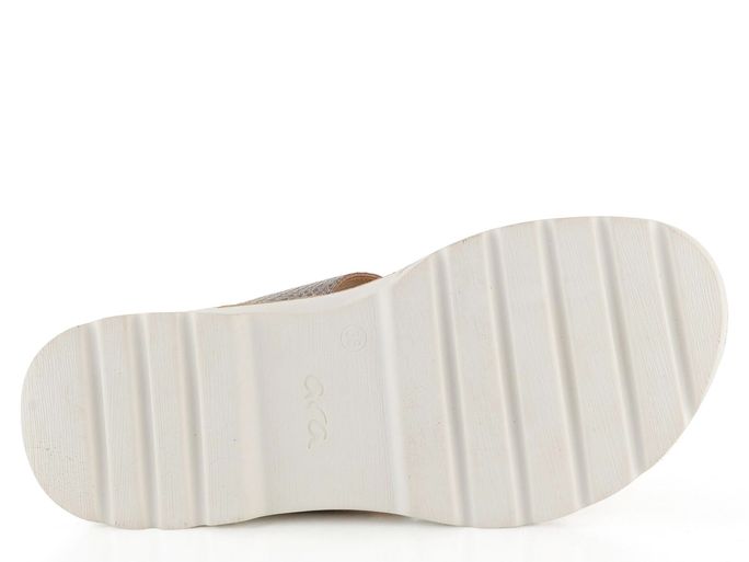 Zažijte pohodlí a styl s dámskými pantoflemi značky Ara. Tyto elegantní páskové boty vynikají svým jemným vzorem s duhovými odlesky, které se mění při pohybu, a nártem zdobeným kovovou aplikací ve zlaté barvě. Svršek z hladké povrstvené kůže a celokožená podšívka zajišťují trvalou kvalitu a komfort. Technologie HighSoft® kombinuje měkký svršek, vypolstrovanou stélku a flexibilní podešev pro maximální pohodlí. Pantofle jsou vybaveny pásky na suchý zip, které umožňují snadné přizpůsobení. Robustní, ale lehká podešev a anatomicky tvarovaná stélka potažená hladkou kůží poskytují jedinečný zážitek z chůze. Tato obuv je ideální pro jarní a letní sezónu, ať už se chystáte do města nebo na lehkou procházku.
