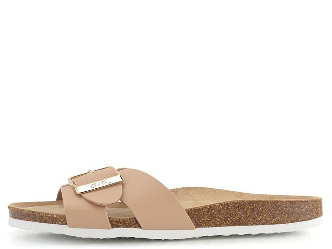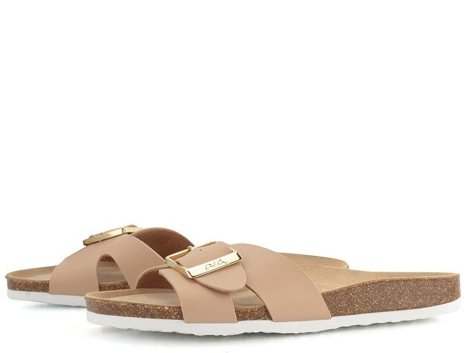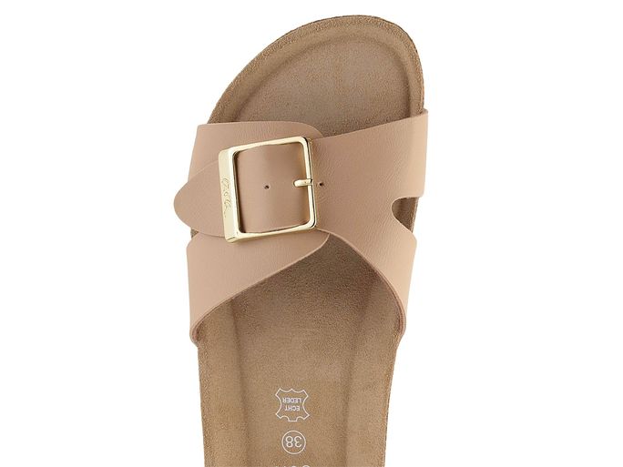 Dámské módní fuzbetové pantofle značky Ara jsou ideální volbou pro každodenní pohodlí. Jejich béžová barva s elegantním zlatým kováním dodává stylový vzhled, který se hodí pro různé příležitosti. Svršek je vyroben z hladké syntetiky, což zajišťuje dlouhou životnost a snadnou údržbu. Široký upínací pásek s možností délkové regulace poskytuje maximální komfort a přizpůsobení se noze. Stélka je velmi příjemná, měkká a anatomicky tvarovaná, potažená broušenou kůží, což zaručuje pohodlí i při delším nošení. Vyšší lehká podešev z korkové směsi a syntetická nášlapná část s hrubším vzorkem zajišťují stabilitu a bezpečný krok. Tyto pantofle jsou vhodné jak pro interiér, tak exteriér, a díky svému komfortnímu střihu jsou skvělou volbou pro domácí i pracovní prostředí.