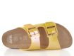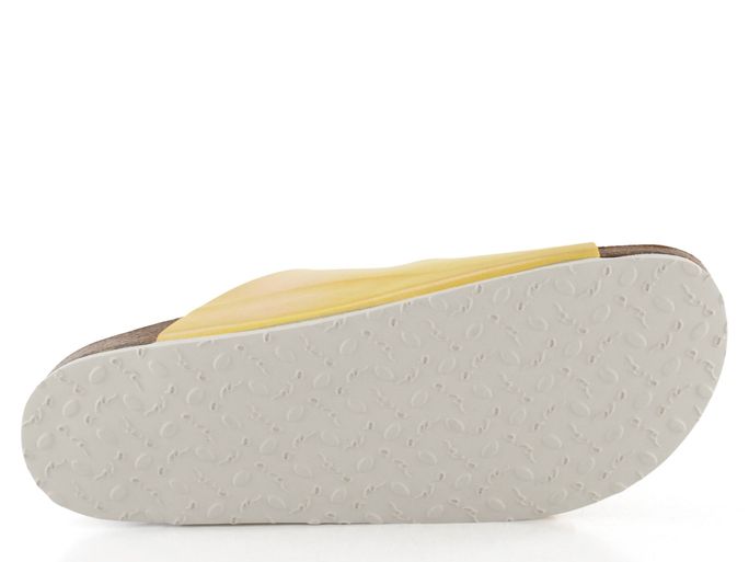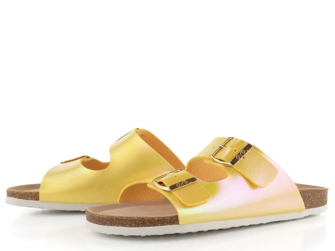 Dámské pantofle od značky Ara, model Maui Sunshine 15-17018-16, jsou ideální volbou pro ty, kdo hledají styl a pohodlí v jednom. Tyto módní fuzbetové pantofle se hodí nejen na doma, ale i do zaměstnání či pro běžné nošení. Svršek je vyroben z hladké syntetiky ve světle žluté barvě s jemným duhovým metalickým odleskem. Široké upínací pásky s možností délkové regulace zajišťují pohodlné nošení. Anatomicky tvarovaná stélka potažená broušenou kůží a technologie HighSoft® nabízí neuvěřitelný komfort. Lehčí podešev z korkové směsi a syntetická nášlapná část s hrubším vzorkem zajišťují stabilitu. Tyto pantofle jsou skvělou volbou pro interiér i exteriér.