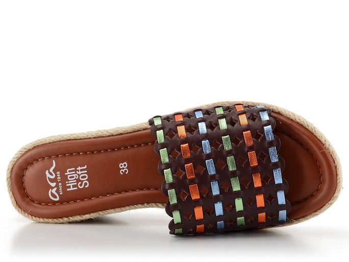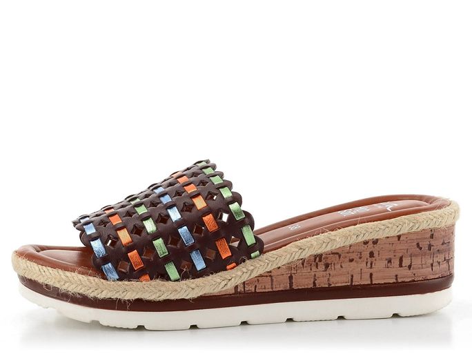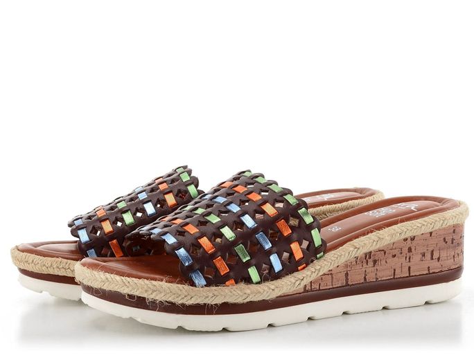 Originální dámské pantofle s metalickými propletenými pásečky a na pohodlném chodivém klínku.