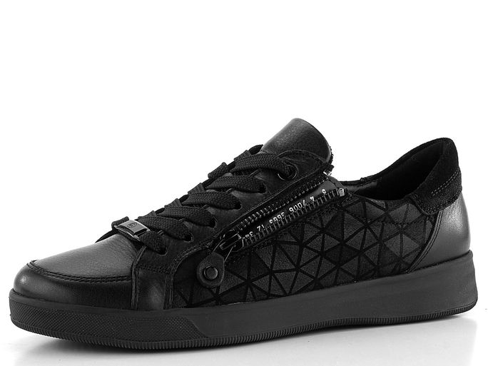 Vstupte do podzimní a zimní sezóny stylově s dámskými polobotkami značky Ara. Tento model vyniká svou černou barvou s jemným leskem a unikátním vzorem nepravidelných trojúhelníků na boku. Díky funkčnímu postrannímu zipu je obutí rychlé a snadné. Polobotky jsou vyrobeny z poddajné hladké kůže, která se přizpůsobí vašemu chodidlu. Stélka s froté potahem a technologií HighSoft® zajišťuje maximální pohodlí při každém kroku. Měkká vnitřní podšívka ze smyčkové textilie s polstrováním Ara bamboo® poskytuje přirozené klima v obuvi. Flexibilní latexová podešev a lepený výrobní způsob garantují dlouhou životnost. Ideální volba pro každodenní nošení do města či kanceláře.