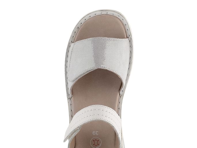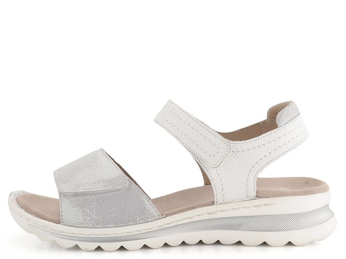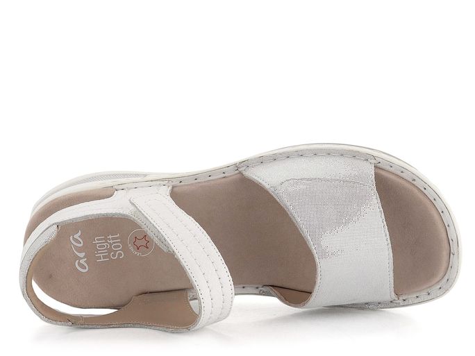 Vyzkoušejte dámské sandály značky Ara, které kombinují kvalitu a pohodlí s elegantním designem. Tyto sandály jsou vyrobeny z celokoženého materiálu se strukturovaným povrchem a stylovým stříbrným metalickým potiskem. Díky dvěma nastavitelným páskům na suchý zip snadno přizpůsobíte obuv tvaru svého chodidla. Měkká kožená podšívka a extra měkká stélka potažená semišovou kůží zajišťují maximální komfort při každém kroku. Inovativní technologie HighSoft® poskytuje měkký svršek, polstrovanou stélku a flexibilní podešev, což zaručuje pohodlí po celý den. Vyšší syntetická podešev s mírným klínkem dodává sandálům moderní vzhled. Tyto sandály jsou ideální volbou pro jarní a letní sezónu.