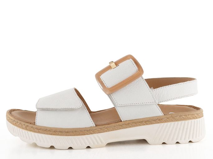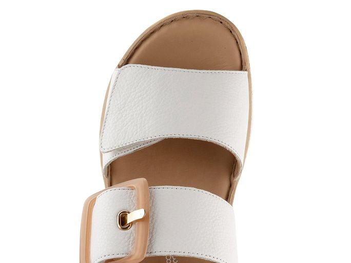 Dámské kožené sandály v bílé barvě s upínacími pásky na suchý zip a robustní podešví.
