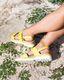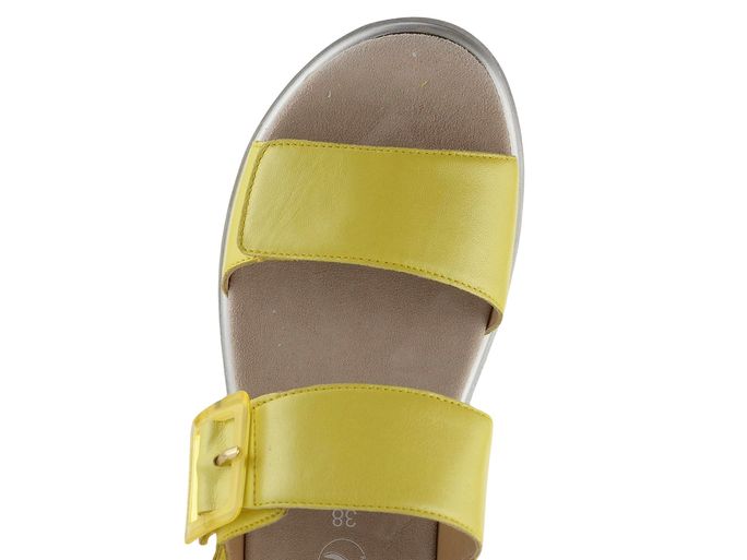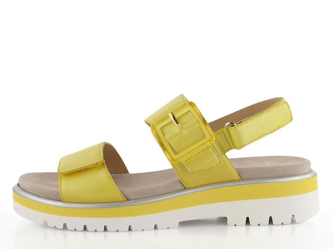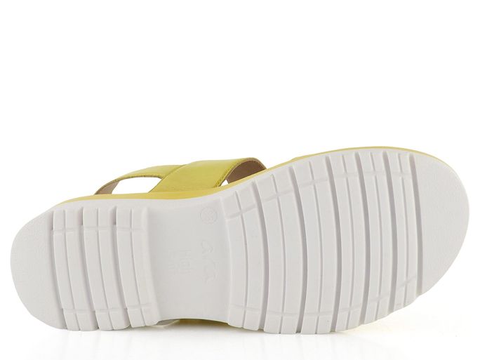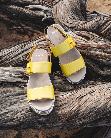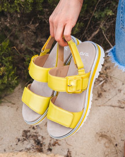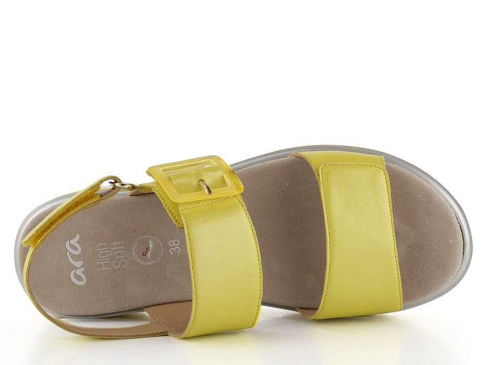 Dámské sandály od značky Ara kombinují kvalitu, pohodlí a styl. Svršek z hladké kůže v jemné světle žluté barvě s perleťovým leskem dodává eleganci každému kroku. Tři upínací pásky se suchým zipem zajišťují snadné obutí a přizpůsobení. Celokožená podšívka z rubové strany a anatomicky tvarovaná, měkká vložka přinášejí maximální komfort. Vložka je navíc vyjímatelná, což umožňuje snadné čištění nebo výměnu za ortopedickou variantu. Technologie HighSoft® zaručuje měkkost a flexibilitu. Vyšší syntetická podešev je doplněna širokým podpatkem o výšce 4 cm pro pohodlnou chůzi.