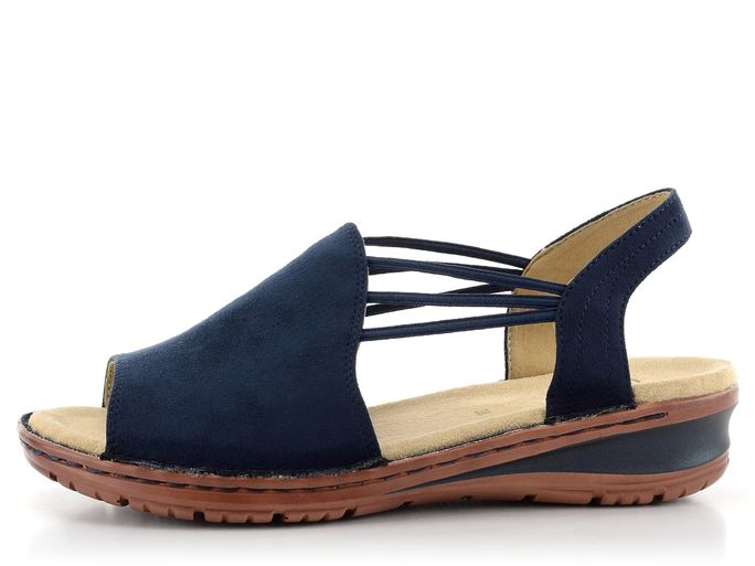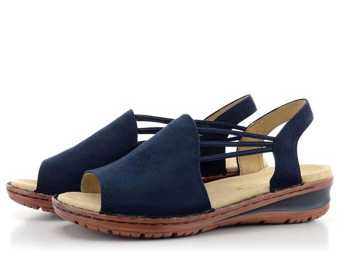 Dámské ultralehké sandály v tmavě modré barvě s postranními gumičkami pro snadné obutí.