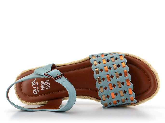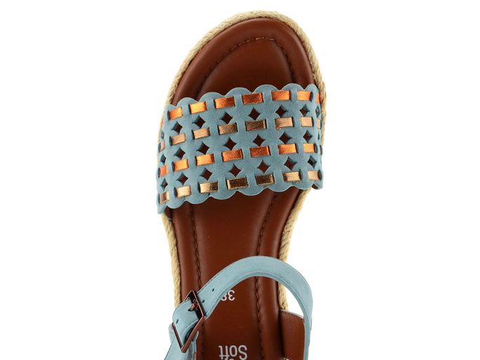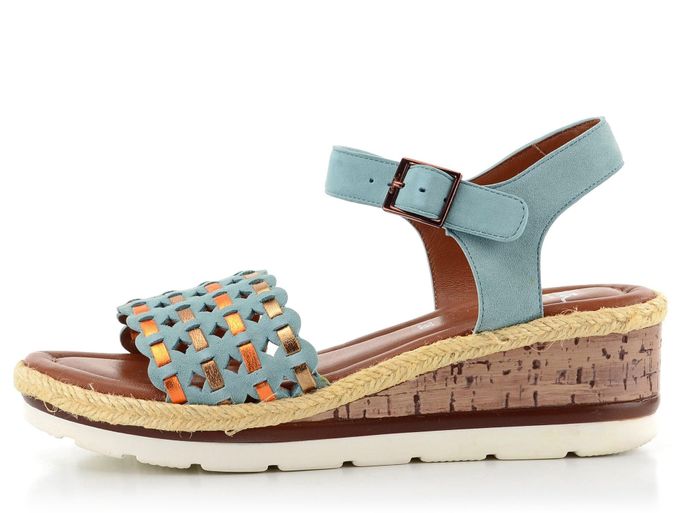 Originální dámské sandály ze semišové kůže s metalickými propletenými pásečky a na pohodlném chodivém klínku.