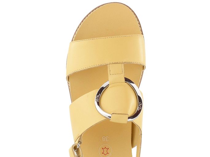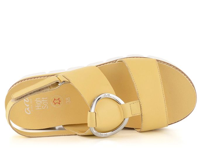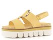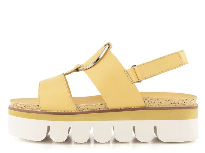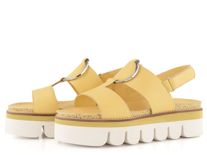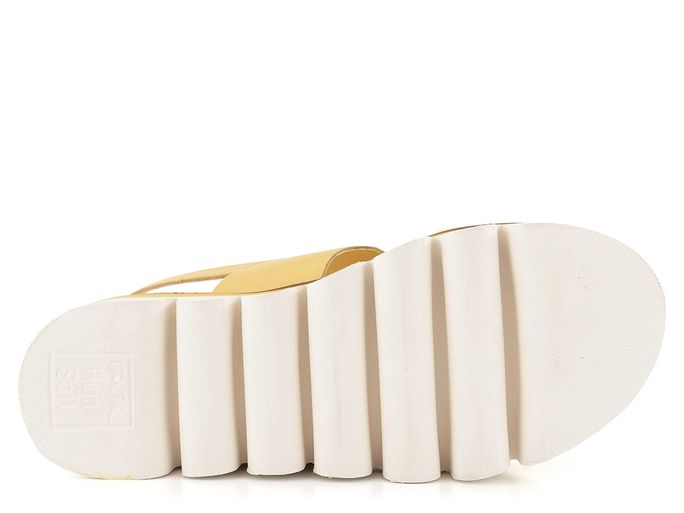 Dámské žluté kožené sandály v komfortním provedení, na vysoké platformě s originálním vzorkem.