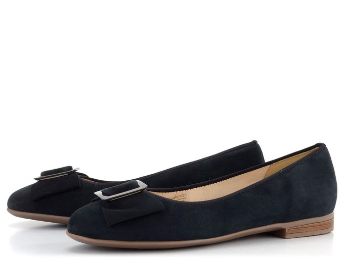 Jednoduché a elegantní baleríny od značky Ara vynikají luxusním zpracováním a komfortem. Tyto černé baleríny jsou vyrobeny z jemné semišové kůže, která dodává botám sofistikovaný vzhled. Špička je zdobena širokou mašlí s plastovou sponou v tónu, což dodává botám šmrnc. Díky technologii HighSoft®, která kombinuje měkký svršek a polstrovanou stélku, jsou tyto baleríny mimořádně pohodlné. Podšívka z hladké kůže a extra měkká kožená stélka s podporou podélné nožní klenby zaručují maximální komfort při nošení. Vysoce flexibilní latexová podešev a nízký podpateček (1,8 cm) poskytují stabilitu a pohodlí při každém kroku. Ideální volba pro každodenní nošení i formální příležitosti.