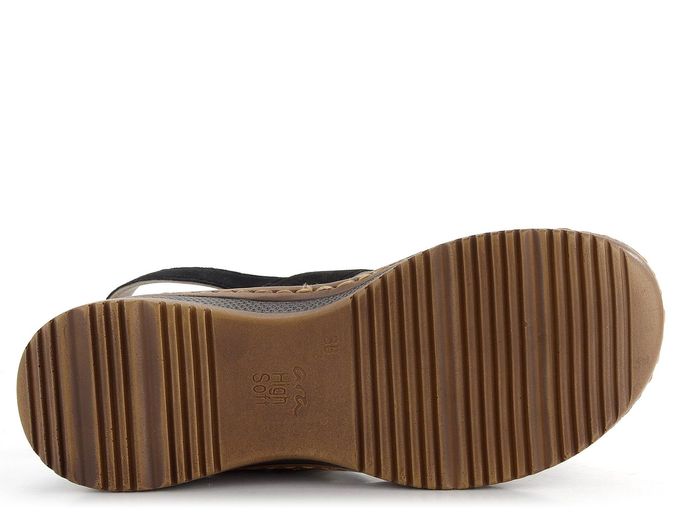 Podešev na mírném dvoubarevném klínku zajišťuje stabilitu a pohodlí při chůzi. Výška podpatku činí 3,8 cm, což je ideální pro celodenní nošení. Šitý výrobní způsob propůjčuje těmto sandálům jedinečnou flexibilitu a lehkost, což z nich činí perfektní volbu pro každodenní použití.