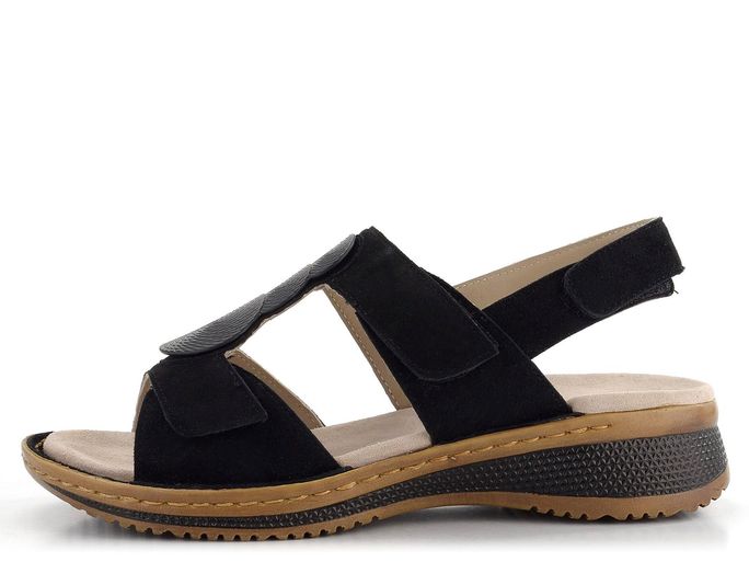 Objevte pohodlí a styl s dámskými semišovými sandály od značky Ara. Tyto sandály jsou ideální volbou pro jarní a letní sezónu. Vyrobeny z kvalitní semišové kůže, poskytují pohodlný střih a elegantní černou barvu. Na nártu se nachází kulatá ozdobná spona s černým nástřikem, která dodává botám jedinečný vzhled.