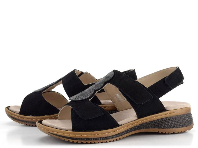 Komfortní dámské semišové sandály se třemi upínacími pásky na suchý zip.