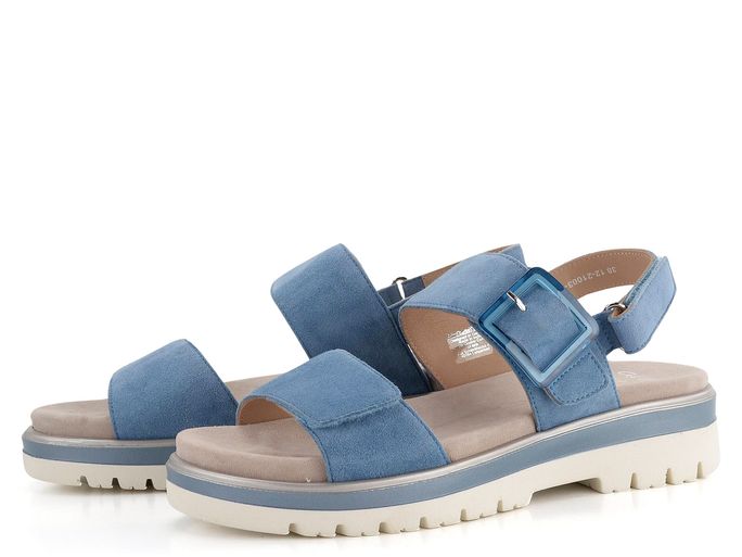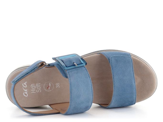 Dámské semišové sandály značky Ara, model Malaga Coolblue 12-21003-14, jsou ideální volbou pro jarní a letní sezónu. Tyto pohodlné a módní sandály v krásném odstínu středně modré barvy (jeans s lehce šedým nádechem) zaujmou svým elegantním designem a praktickými vlastnostmi.