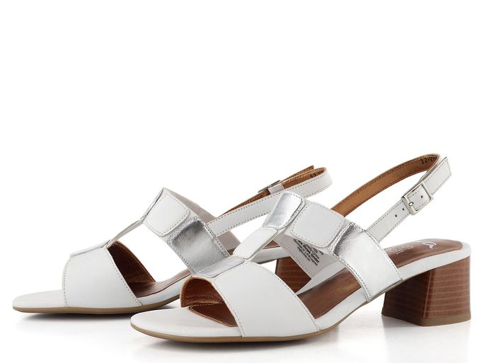 Dámské sandály značky Ara představují ideální volbu pro každodenní nošení i slavnostnější příležitosti. Tyto elegantní sandálky s výškou podpatku 4,8 cm kombinují pohodlí a styl. Svršek z kombinace hladké a metalické kůže v bílé a stříbrné barvě dodává šmrnc každému outfitu.