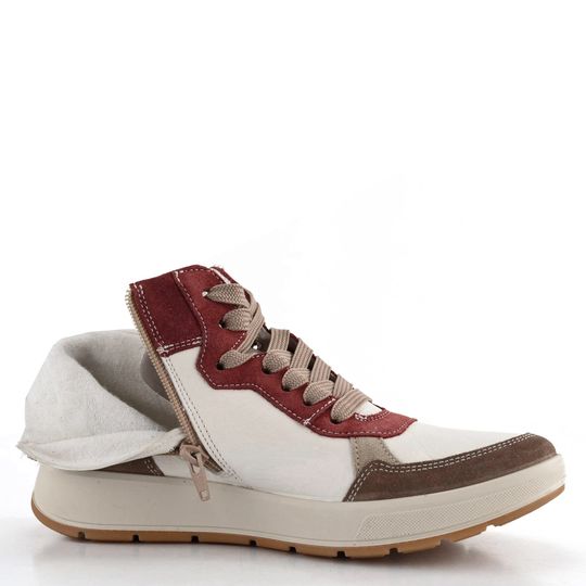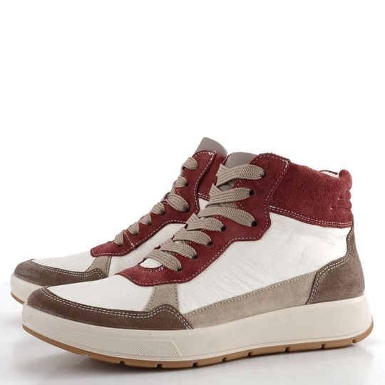 Vyražte do města s dámskými teniskami od značky Ara, které kombinují elegantní design s maximálním pohodlím. Tyto kotníkové boty jsou ideální pro podzimní a zimní sezónu a jsou navrženy pro širší chodidla díky svému prostornému střihu. Svršek z hladké a semišové kůže v kombinaci smetanové, béžové, hnědé a červenohnědé barvy zaujme na první pohled. Šněrování s plochými tkaničkami a zip na vnitřní straně zajišťují snadné obutí. Měkká podšívka z bambusové froté textilie Ara bamboo® poskytuje přirozené mikroklima. Technologie HighSoft® zaručuje měkkost a flexibilitu při každém kroku. S lehkou syntetickou podešví a 3 cm podpatkem budete mít jistotu komfortu po celý den.
