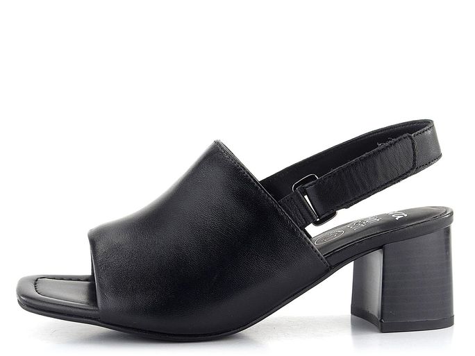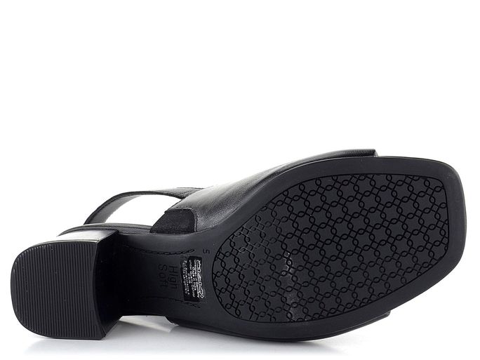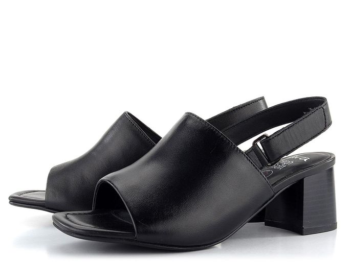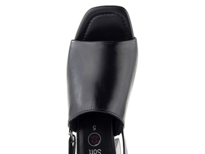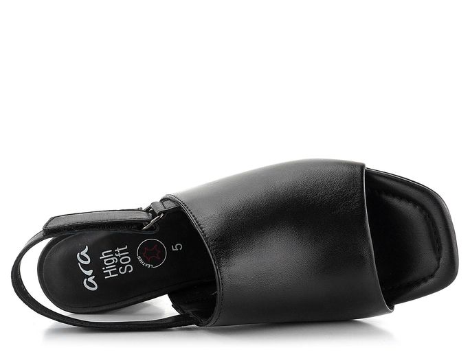Elegantní a širší dámské sandály v černé barvě, s měkkou stélkou a patním páskem upínaným na suchý zip.