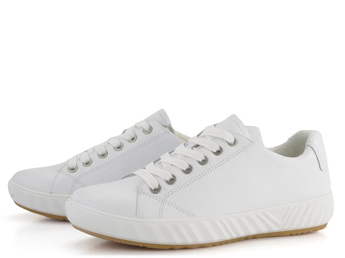 Představujeme pohodlné a trendové dámské kožené polobotky značky Ara v elegantním bílém provedení, ideální pro širší typ chodidla (H). Tyto tenisky z kolekce jaro/léto 2023 vynikají sportovnějším střihem a kvalitním koženým svrškem s přirozenou strukturou. Lehce odražená bílá barva dodává botám moderní vzhled, zatímco měkká vnitřní podšívka z bambusové froté textilie Ara bamboo® zajišťuje příjemné mikroklima a pohodlí. Extra měkká vyjímatelná stélka s froté potahem podporuje podélnou klenbu a patní část. Vypolstrovaný lem a jazyk přidávají na komfortu. Vyšší podešev a lepený výrobní způsob zaručují trvanlivost. Modelová řada a-round® snižuje ekologickou stopu. S výškou podpatku 3,5 cm tyto tenisky kombinují styl a pohodlí, což je činí perfektní volbou pro každodenní nošení.