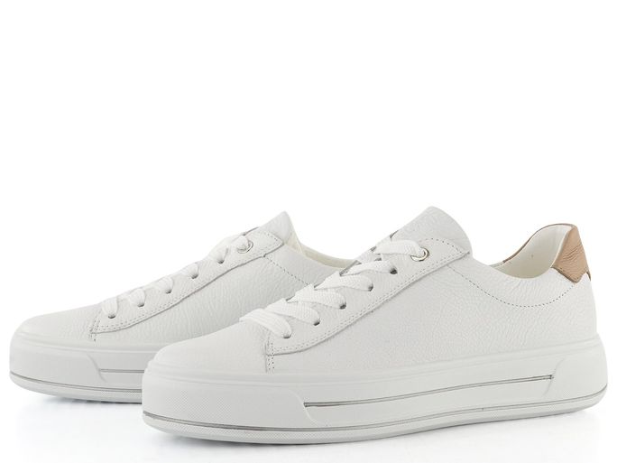 Vstupte do světa pohodlí a stylu s dámskými teniskami značky Ara, které jsou ideální pro městské prostředí i lehké procházky. Tyto tenisky v elegantní bílé barvě s béžovými akcenty na patě nabízejí ležérní střih pro širší typ chodidla (H). Svršek z kvalitní kůže s přirozenou strukturou zajišťuje dlouhou životnost a nadčasový vzhled.
