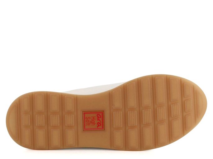 Trendové dámské tenisky od značky Ara přináší styl a pohodlí v jednom. Širší střih s deklarovanou šíří H zajišťuje komfort i pro širší chodidla. Svršek z kvalitní kůže v jemném krémovém odstínu je doplněn o elegantní kovové detaily ve zlaté barvě. Díky klasickému šněrování a postrannímu zipu je obutí snadné a rychlé. Vnitřní podšívka z bambusové froté textilie Ara bamboo® je prodyšná a příjemná na pokožce, zatímco extra měkká vyjímatelná stélka s froté potahem poskytuje maximální pohodlí. Technologie HighSoft® kombinuje měkký svršek a polstrovanou stélku pro dokonalý komfort při každém kroku. Vyšší sportovní podešev a lepený výrobní způsob zajišťují dlouhou životnost těchto tenisek. Ideální volba pro jarní a letní sezónu. Výška podpatku je 3 cm.