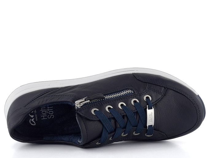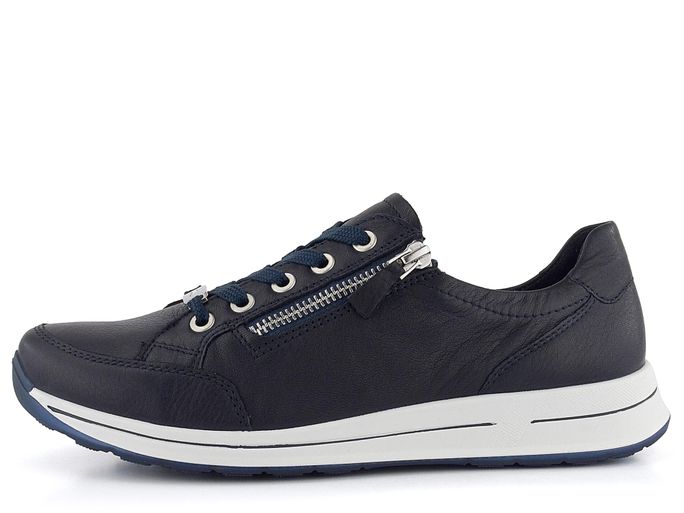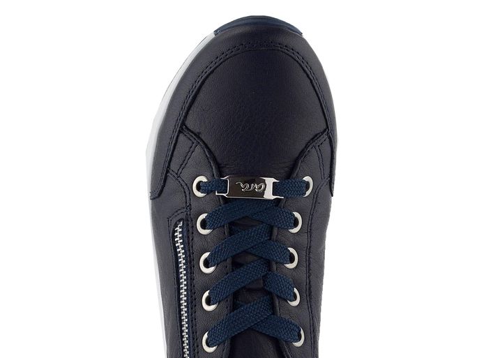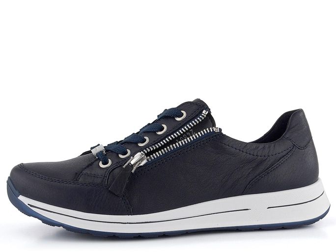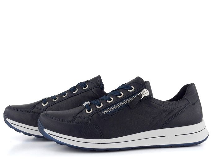 Trendové dámské tenisky od značky Ara jsou ideální volbou pro ženy, které hledají styl a pohodlí v jednom. Tyto tenisky vynikají svým širším střihovým provedením, což zajišťuje komfort i pro širší nohu díky šíři H. Svršek je vyroben z kvalitní kůže s přirozenou strukturou, která je doplněna kovovými detaily ve stříbrné barvě. Temně modrá barva dodává teniskám elegantní vzhled.