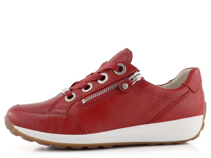 Ara trendové dámské tenisky značky Ara v širším střihovém provedení. Tento model nabízí šíři H, která poskytuje dostatek prostoru pro vaše nohy. Svršek je vyroben z kvalitní kůže s přirozenou strukturou v elegantní karmínově červené barvě, doplněné kovovými prvky ve stříbrné barvě. Šněrování s módními širokými tkanicemi a krátký postranní zip zajišťují snadné obutí. Vnitřní podšívka z mřížkované textilie efektivně odvádí vlhkost, zatímco měkká vyjímatelná stélka s textilním potahem a inovativní technologie HighSoft® poskytují maximální pohodlí. Sportovně laděná podešev s latexovým nášlapem a třícentimetrovým podpatkem dodává botám styl a komfort. Tento model je ideální volbou pro každodenní nošení ve městě, do kanceláře nebo na lehkou procházku venku.