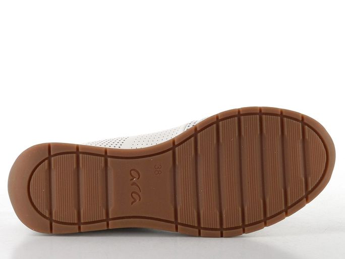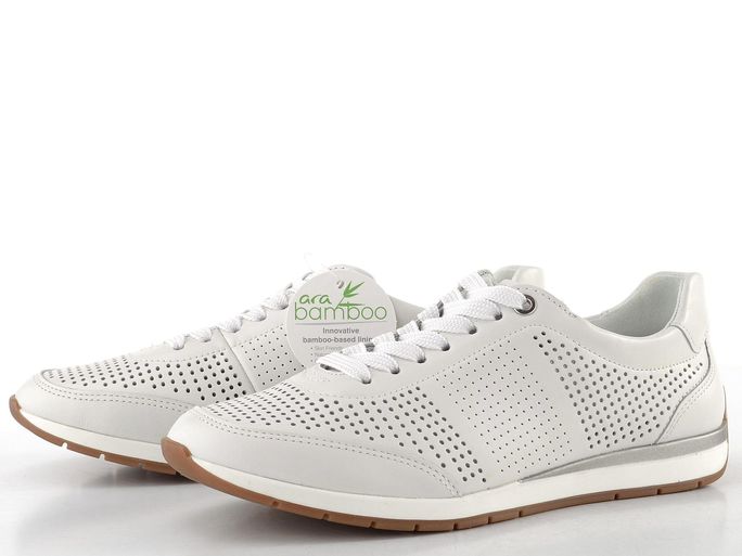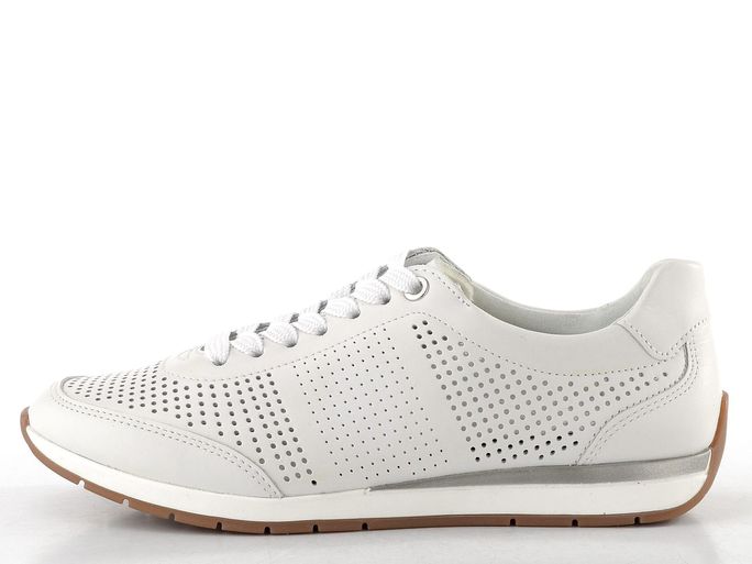 Dámské tenisky značky Ara v modelu Portofino 12-50908-04 představují ideální volbu pro jarní a letní dny. Jejich komfortní střih G1/2 zajišťuje dostatek prostoru pro normální i mírně širší chodidla. Svršek z hladké kůže s perforovaným vzorem nejen skvěle vypadá, ale také účinně odvětrává nohu. Tenisky jsou doplněny o stylové stříbrné detaily, které dodávají elegantní vzhled.