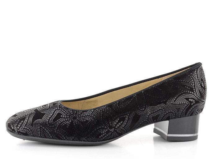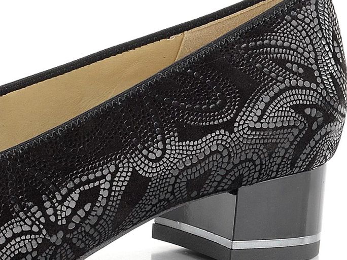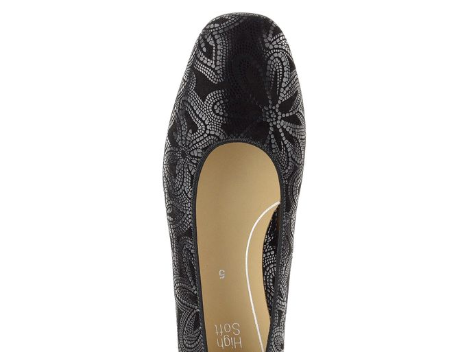 Módní lodičky s květinovým vzorem v širším střihovém provedení.