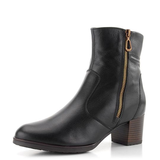 Dámský kožený kotník v černé barvě a elegantním střihu, bez zateplení.