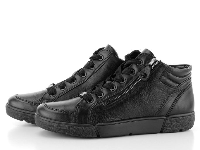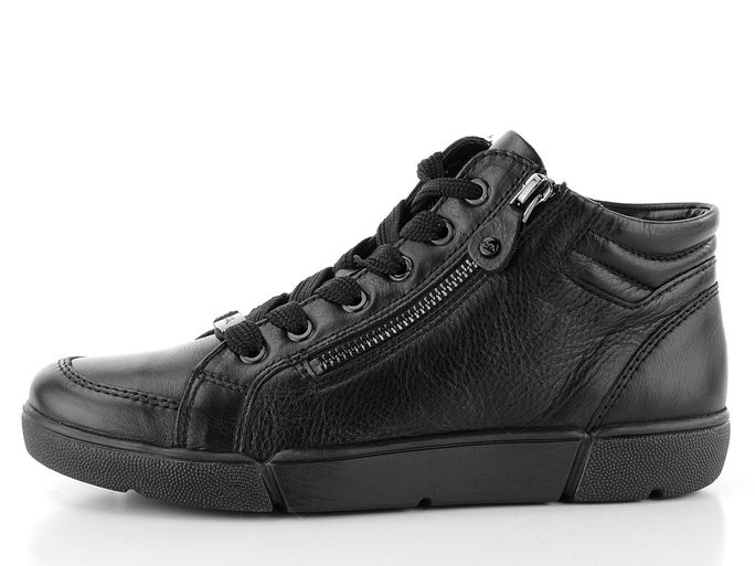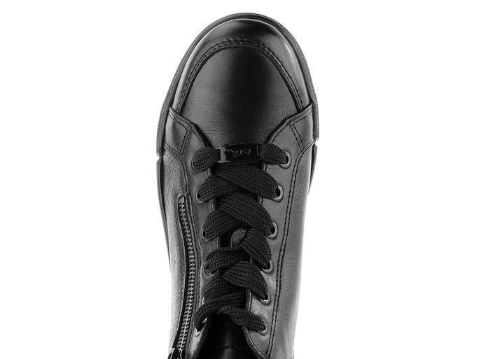 Komfortní dámský kotník v černé barvě, na šněrování a s funkčním postranním zipem.