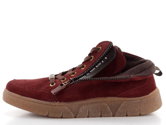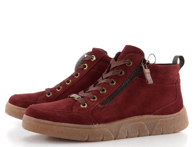 Dámský kožený kotník na šněrování ve vínové barvě, s postranním zipem a tvarovanou vyjímatelnou vložkou.