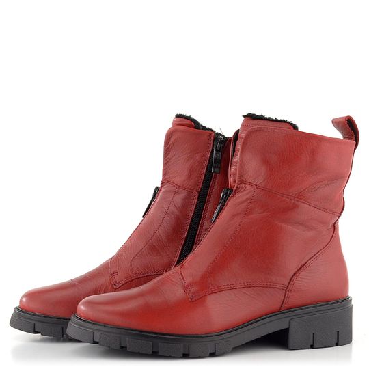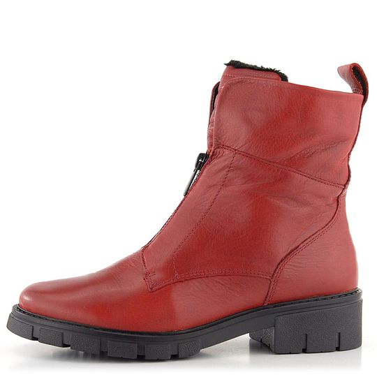 Dámský kožený kotník s teplou podšívkou a s módním zipem na nártu.